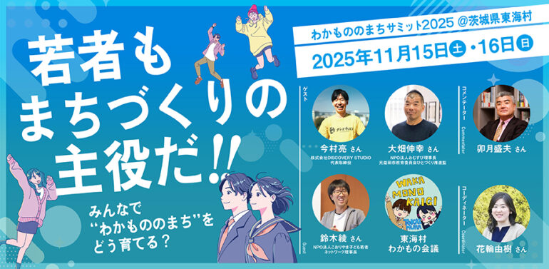 11月15日には、午後から全国ユースカウンシルサミットおよび東海村でのフィールドワークを実施。翌16日には、1日かけてわかもののまちサミットを開催します。